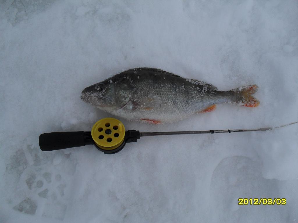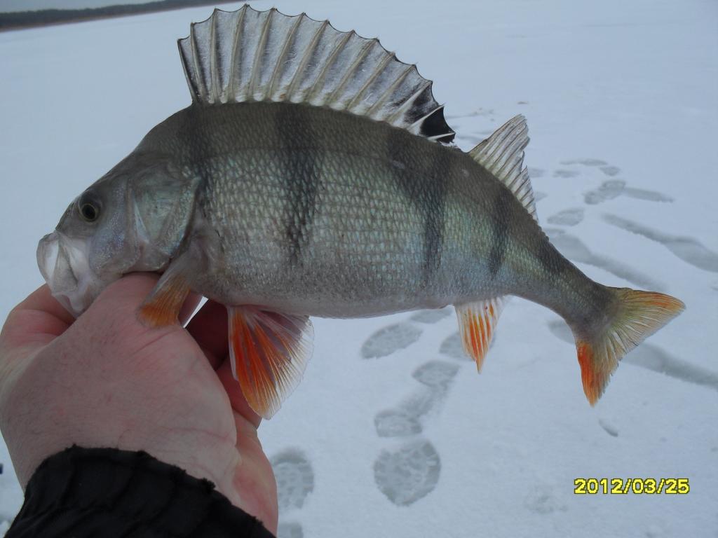 Окуня в этом зимнем сезоне половить, как в прошлом не удалось, но где мы его по перволёдку нашли, там он весь сезон и коматозил, покрытый пиявками. Пока не выпал снег, зафиксировали наличие окуня на «сахарном» (непрозрачном) льду. Забили в память эти места и катались периодически на них.