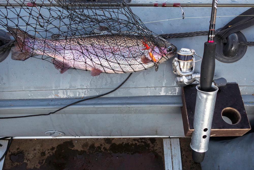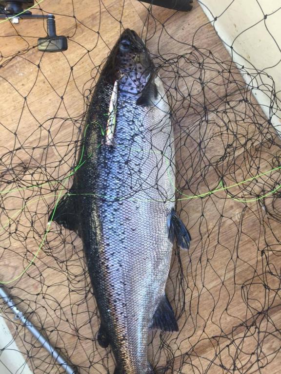 40минут борьбы и в лодке рекордный лосось на 14кг. Спасибо Антону, отличный подарок к дню рождения!