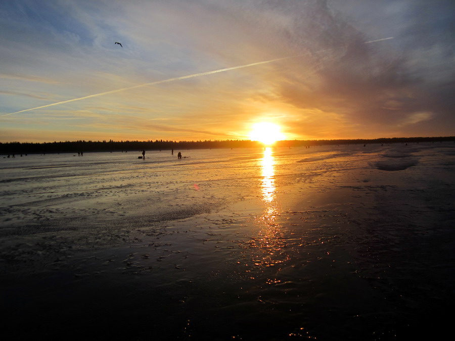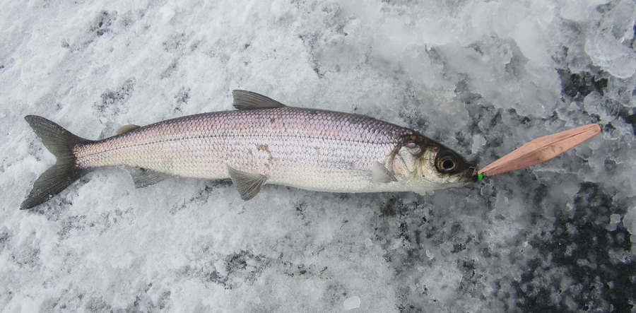 Оделись и в бой. Ну а дальше всё как обычно. Ходили, бродили - железом кормили, баласирами кормили - а он "падла" - не ест. И вот по пути к машине на одной из лунок тычок - задержался , ещё тычок - есть родной и не один - а два