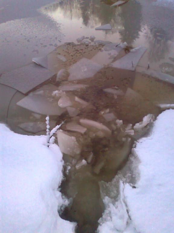 Сегодня побегали по реке в попытке выловить хоть что-нибудь. В результате Виктор обрыбился одной 100-граммовой плотвой, у меня было пару вялых поклевок, не реализовал. Выставлена была, соответственно одна жерличка, но и ее обошли стороной. Прошли по реке, сверлясь на всех излучинах, поворотах, входах и выходах из омутков больше километра, пробурено и проверено около 40 лунок, но безуспешно. Пытались ловить окуня, коего несколько лет назад там было достаточно и щуку, но они сегодня отдыхали. Проверены все типы приманок, включая цикады, зимние воблеры, балансиры, вертикалки, мормышки, донки (правда последние недолго)..... Даже уклейка из подо льда не брала. Был там первый раз, места очень живописные, когда-нибудь заскочу еще, но не скоро