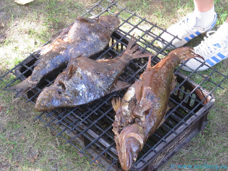Подьехал , Кострома , увидев нас за чисткой рыбы и её колличество , даже чаЙку не попил, утёк в озеро