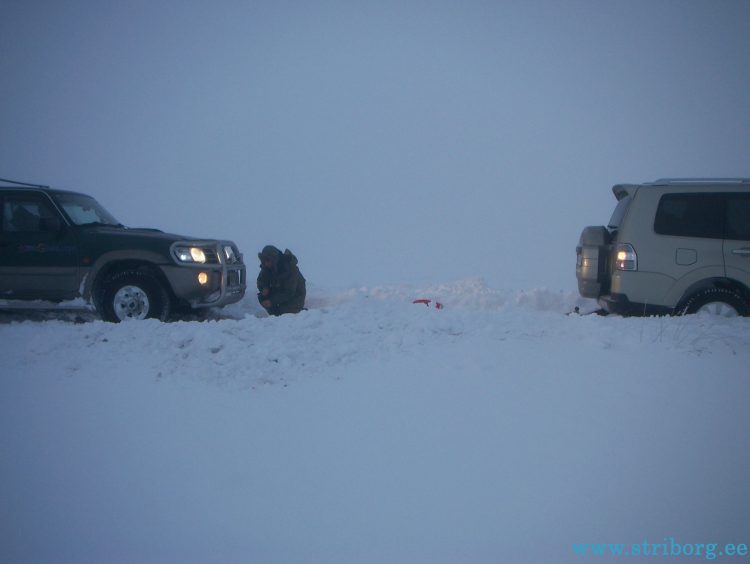 из расчета 10 крон км. Чуть поторговались, договорились и пошел обратно на лед. До заката насверлил и проверил крупным балансиром штук 25 лунок вдоль берегового свала и на ямах в надежде на щуку. Щука отдыхала. По пути к машине опять пришлось протаптывать тропу - Все следы полностью занесены и поле выровняно! Появилось первое нехорошее ощущение - а как там дорога?