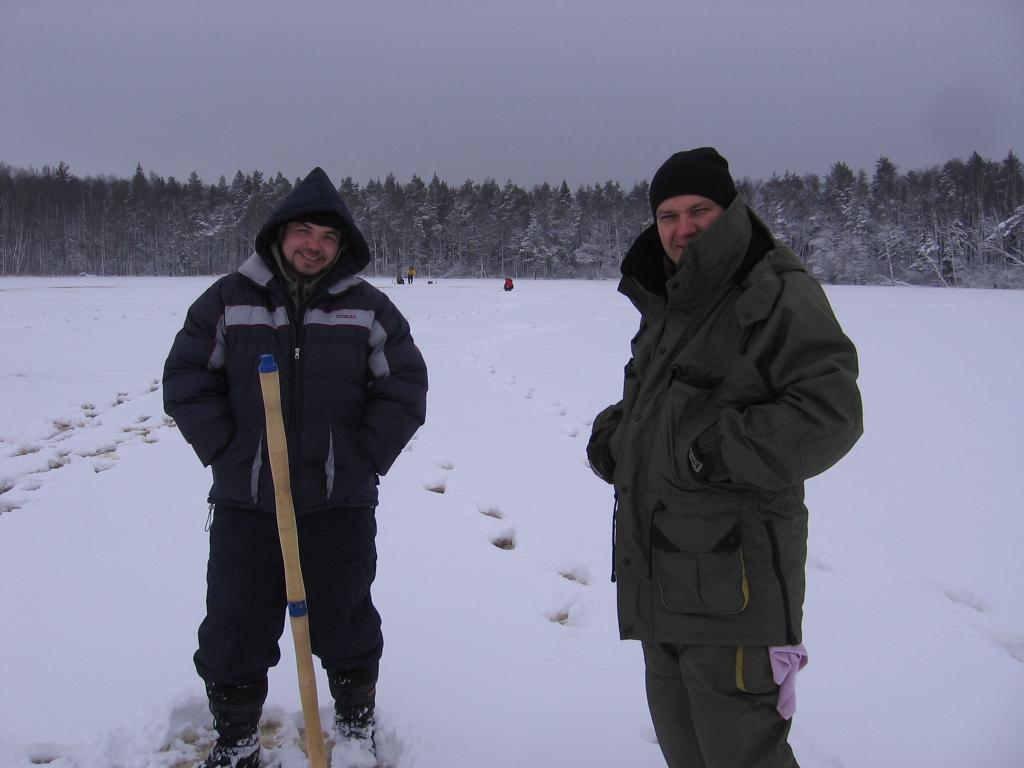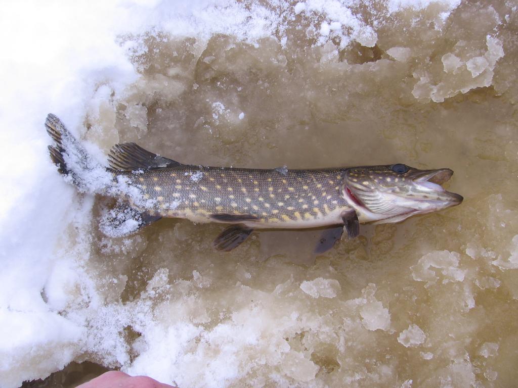 Ну,таки и снят зуд долгого отсутствия на рыбалке!В пятницу открыли сезон ловли со льда,посетив сей водоёмчик.(На кануне, в четверг скатались за живцом, на озеро Харку.В течении трёх часов набрали необходимое количество плотвичек и окушков.)По приезду на озерцо разделились.Один таки остался на канальчике,занимаясь пополнением живца,а двое пошли выставлять жерлички.Выставив на привычных местах,возвращаемся к товарищу.Тяпнув чайку за его первые поимки со льда в сезоне,занимаемся выловом прозрачной молоди окушка(годного правда для ловли в другое время года и на поплавок)Изредка правда проскакивает и то что нужно,ну и откровенный перебор,но не бонус.Начинают подъезжать и рыбаки,коих в этот день было около 15ти человек.В окуляры замечаю первый флажок,зажёгшийся и сигнализирующий о поклёвке.Подходим,подсечка,вываживание и вот щупачок-фломастер вызывает не с чем несравнимую радость,нашептав тому за родителей отправляем в родные пенаты
