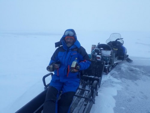 С утра небольшой морозец, ветерок, чуть-чуть осадков и отличный ход. На удивление, промёрзшие сугробы на льду сохранились, хотя и уменьшились в размерах.