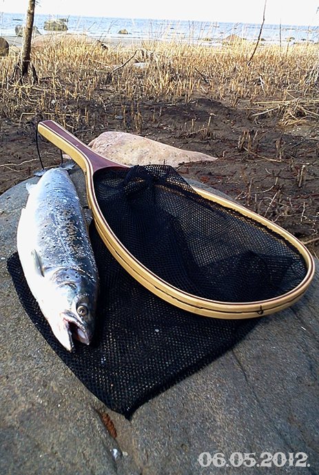 Итак в конце концов кумжа оказалась в подсаке. Продолжаю ловить.