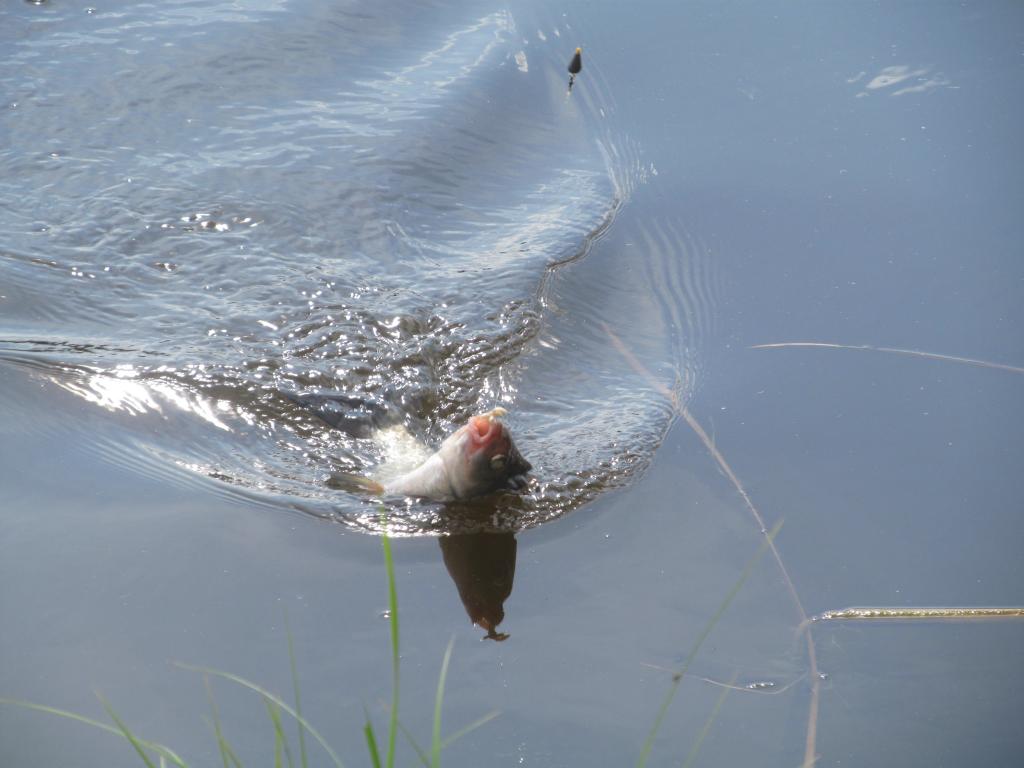 Семь спымал да три ушло, причём один может или хороший карась или карпик был, не мог подтянуть, фрикцион жужжит и ни с места, потом пошёл в реку, минуту покачал и открутился, здоровый был чорт