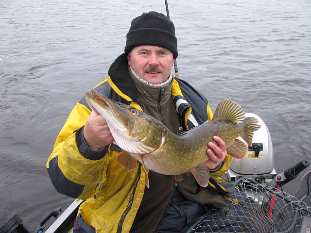 Погода побаловала теплом (+8), переменной облачностью, слабым З-СЗ ветром, который к вечеру совсем стих, и теченьем вниз. Вода ещё прибыла. Приехали первой электричкой и как раз на рассвете уже были в лодке. Не разменивались на поиск живца и сразу поехали на перешеек. За 40 минут Димон на озере поймал 31 плотву, а у меня на реке была только одна невнятная поклёвка. Абсолютным победителем стал Димон. Сделал меня "всухую" со счётом 5:0. Поймал три судака 1-1,2 кг и две щуки по 1,2 кг. Поклёвок у меня было, пожалуй, не меньше, чем у напарника, но вот с реализацией не задалось.