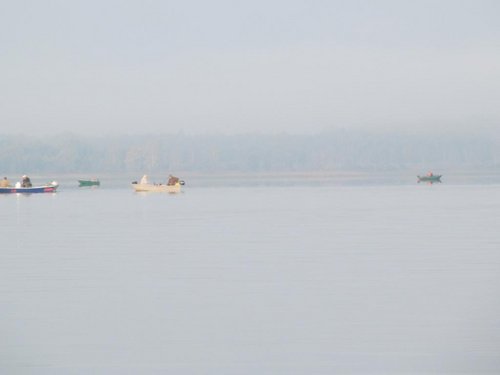 Уже второй раз озеро встретило непроглядным туманом.Пяток метров просматривается кругом и все