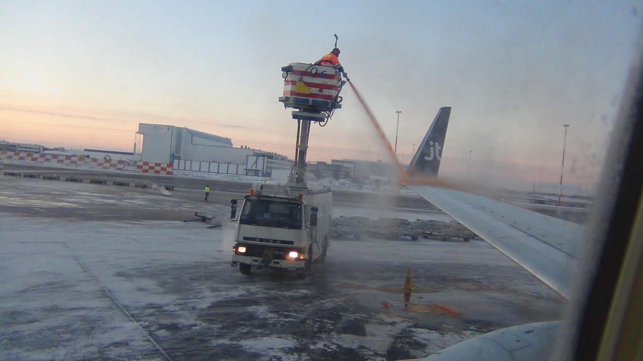 Улетали 5 ого января,на улице всего -20 но в самолёте умудрился замёрзнуть туалет. 2 часа отогревали но увы. Загрузили нам воду в бутылках для М/Ж и в путь!