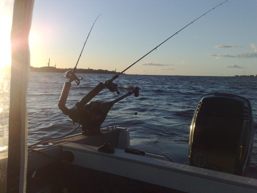 Кстати, сегодня тоже ставил две удочки на даунриггер по следующей методике - настраивал на фарватерную глубину (максимальную), катушки фиксировал в рабочем состоянии и больше не подматывал. Ну и шёл по фарватеру, бровкам, отмелям совершенно спокойно. Перезаряжал обе удочки только после поклёвки, но на фарватере.