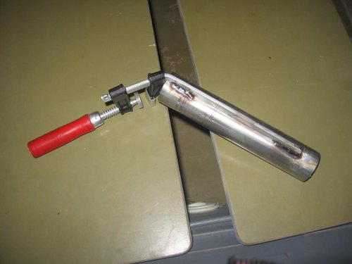 Емельяныч, хомут на трубу со стяжкой в ухе. В ухе отверстие на 6-8-10(габариты не понятны)....и тд. Клеем не спасёшь, ну и фрикцион на катухе регулируй иногда