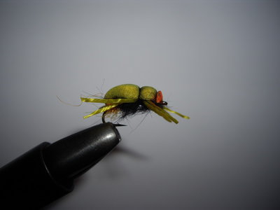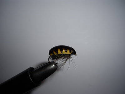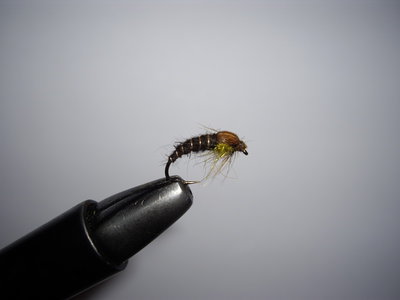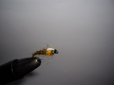 Авдей писал(а):И вот ещё нимфа - с чёрной эластичной нитью, бородкой пера павлина, люрикса и бородок пера петуха. (только связал)