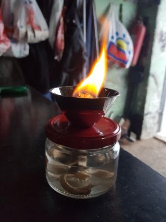 Думаю о жидких источниках горения с дожигателем, то есть надо топливо минимально коптящее, минимально воняющее, пламя крупней чем у свечки, желательно регулируемое.