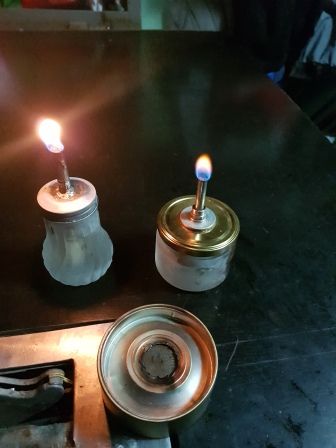 Пока не из чего делать основной корпус, немного эксперементирую, сделал спиртовку из банки пониже и пошире, "сахарницы" хватало на 4-6 часов в зависимости от высоты фитиля, у сетчатого колпака нужно донышко цельное заменить на сетку, тогда можно уменьшить и его высоту, а главное пламя перестанет срываться на копчение.