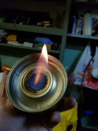 Для спиртовки все матерьялы оказались под руками, сломанная сахарница "насыпайка", фитиль для масляной лампы и технический спирт денатурат. Просто отрезал лишнее от носика сахарницы и перевернул его наоборот, вставив внутрь скошенную часть трубки на 10 милиметров приблизительно, припоял, фитиль разрезал на три части нужной длинны и всунул в трубку, открутив крышку можно его выталкивать или втягивать регулируя высоту и мощность пламени. При плотном закручивании крышки спирт почти не выливается, но в будущем прокладка не помешает, как и заглушка для трубки. Но если спиртовку перевернуть, то проходит секунд 40 пока спирт капнет через фитиль. Далее мне понравилась идея английского физика Гемфри Деви который изобрёл в 1815 лампу для шахтёров добывающих уголь, практически первый газоанализатор горючих смесей. Сетка удерживает огонь внутри и газ попадая внутрь воспламеняется, но наружу не распрастраняется, при особых физических свойствах сетки, медь и куча мелких отверстий. Кому интересно "гугл" в помощь, минимально инфориации тут https://ru.wikipedia.org/wiki/%D0%9B%D0 ... 0%B2%D0%B8
