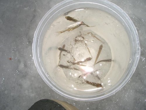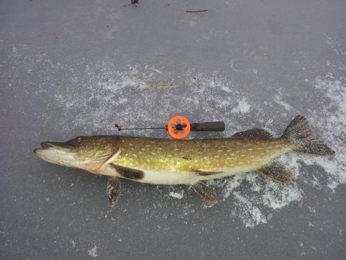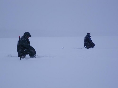Ход местами тяжёлый, с водичкой под снегом. Лёд чуть толще критичного. По рыбе, у Димаса одна съедобная щучка. Зато пробзделись классно