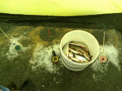 И всё-таки сегодня не усидел.Очень хотелось половить плотвичку.Утром подьехал на канал,поначалу страшно выходить,глядя на окружающую картину.Однако пара контрольных лунок показала уверенных десять сантиметров крепкого льда.Плотвичка примерно как и прошлый раз,ловилась неспеша,до обеда,после пауза и в игру включается подлец.Вторых не испытывал желания,не стал ждать вечера поехал домой.Спасибо канальчику.Всем удачи