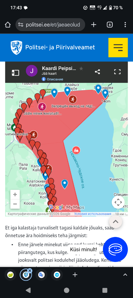 Ну карту ледовую от Муствеэ и вправо дополнили, а вот северная часть озера осталась без информации по ледовой обстановке.