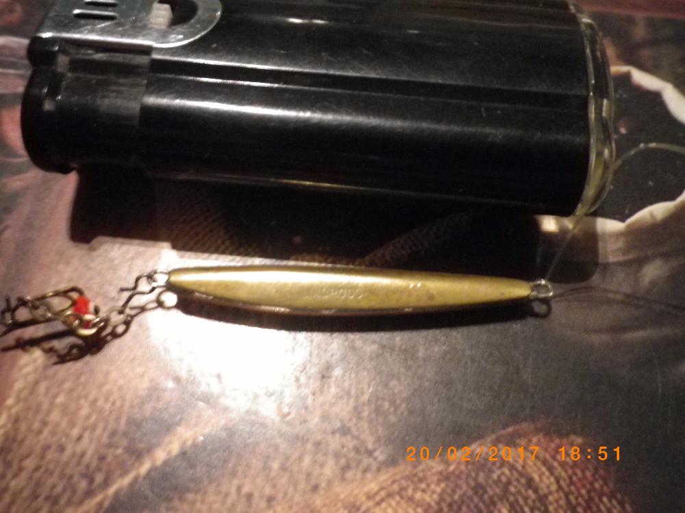 Когда то оочень давно, прикупил себе блёсенку. Какое то время лежала. Какое то время работала. В последние годы очень даже хорошо. Как ни спросят, на что ловил(ловишь), грю на гвоздик. Ну выглядит так. Но помню, что была там какая то надпись.