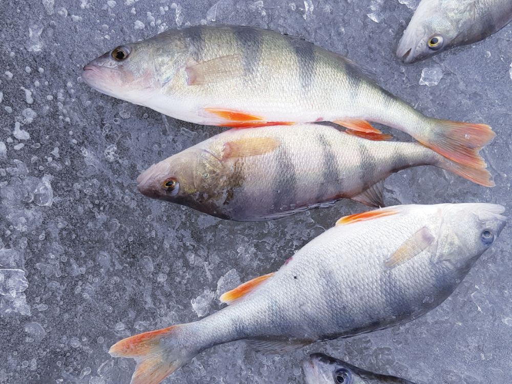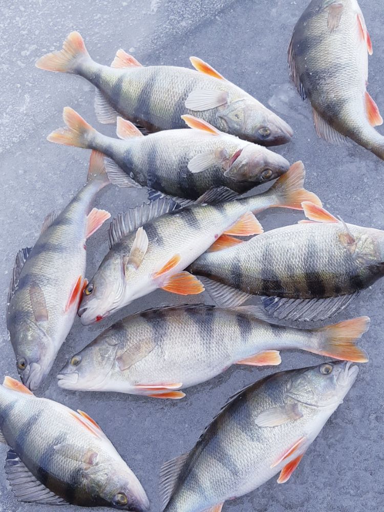 Сегодня опять почти без рыбы. В каждой лунке по1-3 мизерных окушка. Получился один дуплетик,думал что красавец окунь будет