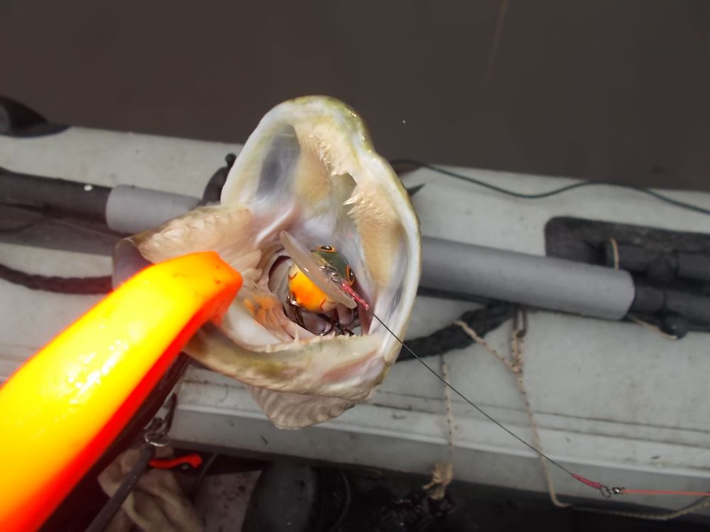 Воблер был поперёк пасти, о тройники не зацепились за жёсткое нёбо.