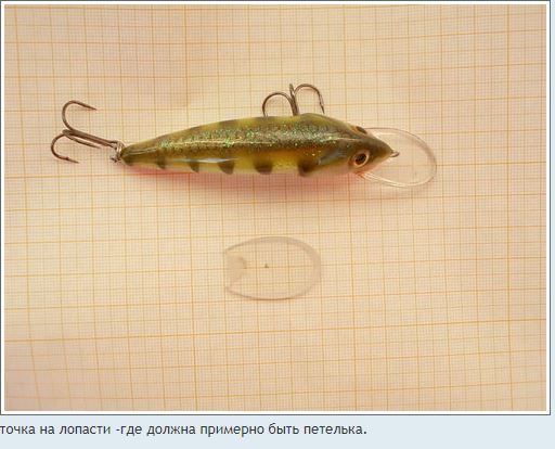 Ближе к линии пуза. Валера, я же фотку показал.... сравни свой воблер с моим. если провести линию от буксировочной петельки к хвостовой, то у тебя эта линия находится чуть выше середины воблера, а у меня ниже , ближе к пузу. Вот и вся проблема. Всегда новички почему то (и я в их числе в своё времяAmico писал(а): 09 фев 2022, 15:03 Володя, не сочти за назойливость, уточни "ближе к линии" это плоскость лопасти ... нет не понял