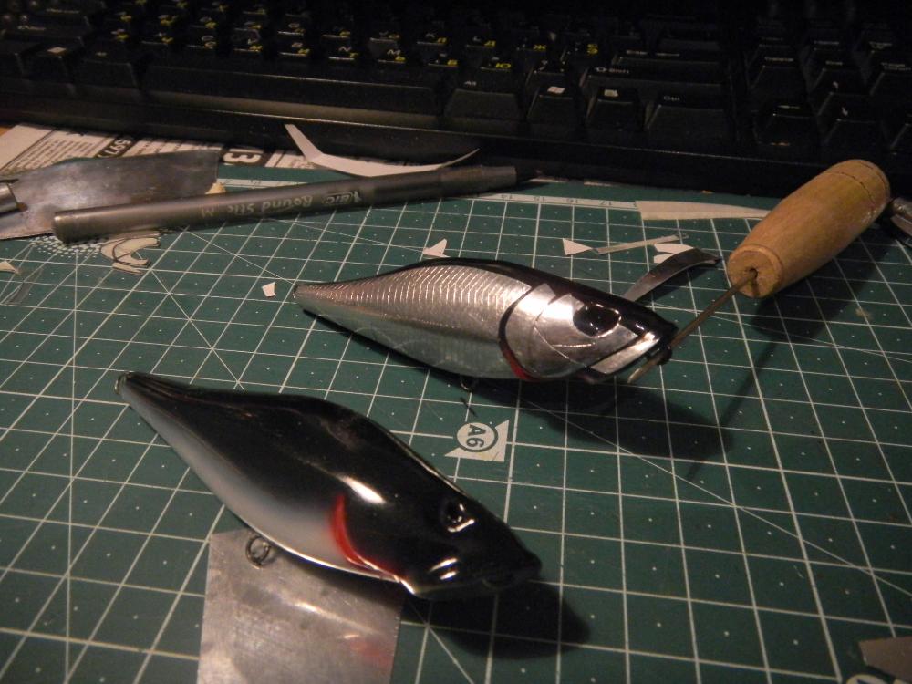 О вышевыставленном 45мм воблере с лопатой из полика. Раньше поликарбонатом не пользовался , нечем было клеить. Перепробовал кучу всякого, в т.ч. импортные сециализированные клеи, разные эпо- все равно полик терял свои качества, ставал гибким, ломался. Здесь информации тоже не нашел, перелопатил весь форум(может и пропустил, форум большой). Сделал так- нанес насечки на лопату,мокнул внутренней частью в водный яхтный лак, высушил. Потом посадил на пятиминутку эпо"Момент", которая вообщето убивает полик .Потом завершающий слой лака полиуретанового(он тоже разрушает полик). Все получилось. Полик сохранил свои качества на 100%. Лопата стоит мертво.