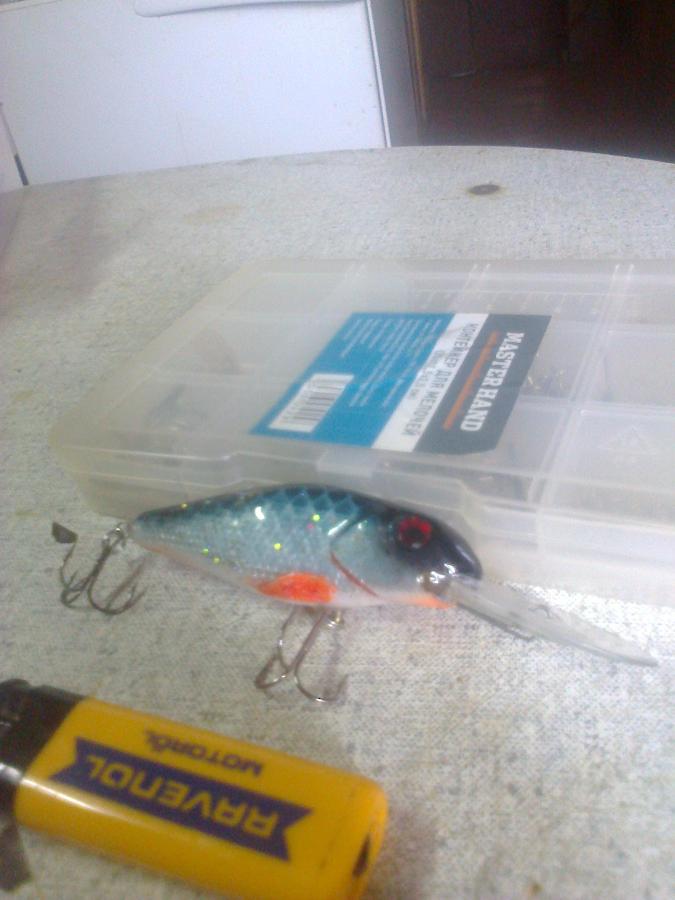 Более-менее фото с телефона получилось.Сменщик попросил продублировать любимый дайвер.Лопату попросил сменить(для заглубления,оригинал что-то около 3-х метров)Погремушку попросил тожк.Воблер старый,ободранный,чёрного цвета ,разобрал только А-элита логотип.Получился 80 мм.,вес21.8 гр.Делал из липы.