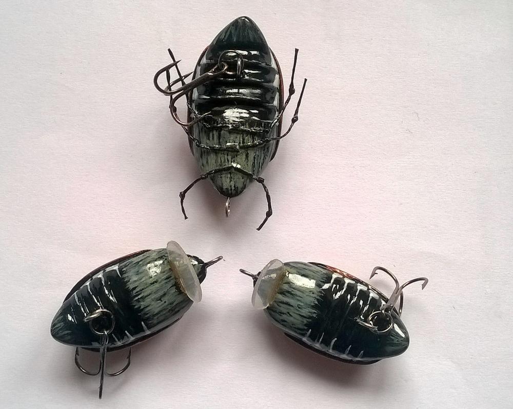 Букашки для голавля. Липа, акриловые краски Декола, лак Maxima. Длина 30мм, вес 2,3-2,6гр.