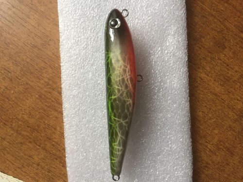 второй, вот этот (75см): а ловил на вот такие деревяшки: бальса, 50мм, тонущий, 1кр. - 4,8гр., 2кр.- 5,6гр (это уже с подвеской).
