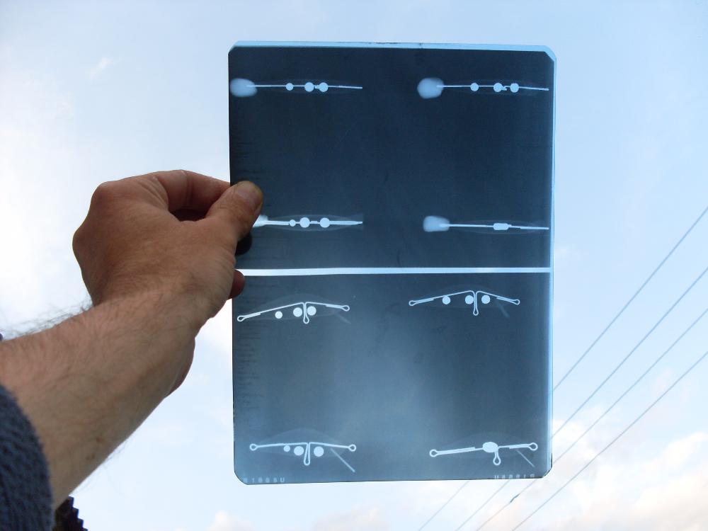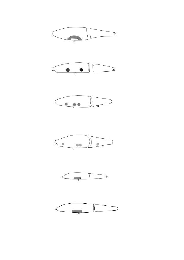 Белые пятна на снимках это пластилином крепил на рентген столе хвост воблера в вертикальном состоянии.
