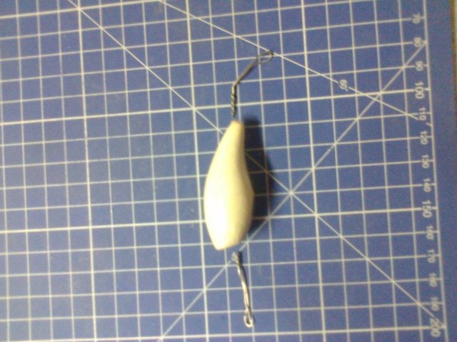 )Так вот,решил её и разрезать.Раз бальса-надоть петли вынуть-не тут то было!На носовую и в хвосте на каждую приложил при крутящем моменте минимум по 30-40 кг.На фото скрутки из тела.Брюшную-не смог вытащить-вытащил бы,да воблер бы дал дуба в разные стороны.Тельце пропитано и покрыто пропионатом.Так что на мой взгляд,держит бальса скрутки.Без фанатизма.