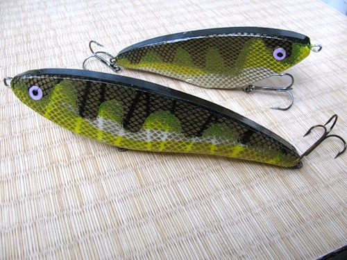 Смотрятся - очень симпатично, форма тела - вполне рабочая... Попробуй делать анимацию катушкой : http://www.jerkbait.ru/forum/index.php?topic=1062.0 или довольно длинными потяжками . При длине 140 мм и правильной огрузке даже до плавающего состояния вес будет от 50 гр и более, поэтому мясорубкой воспроизводить джерковую проводку ударами не советую - может загнутся роликовый подшипник.