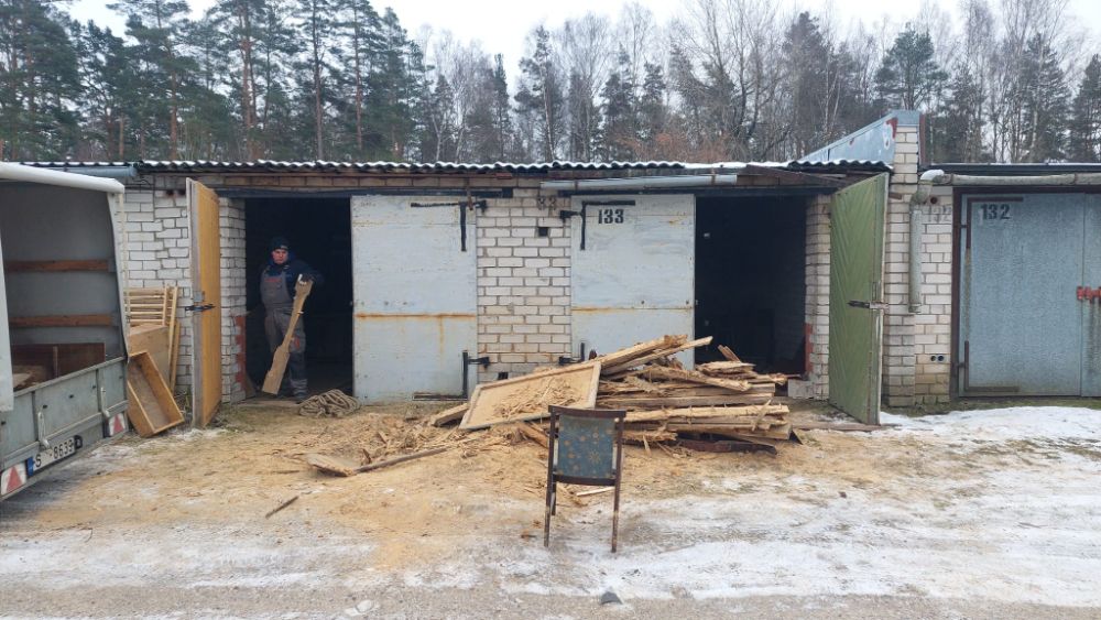 Гараж под ворота до потолка завален. Потом Оказалось , что до этого она ещё 2 гаража в аренде завалила хламом.