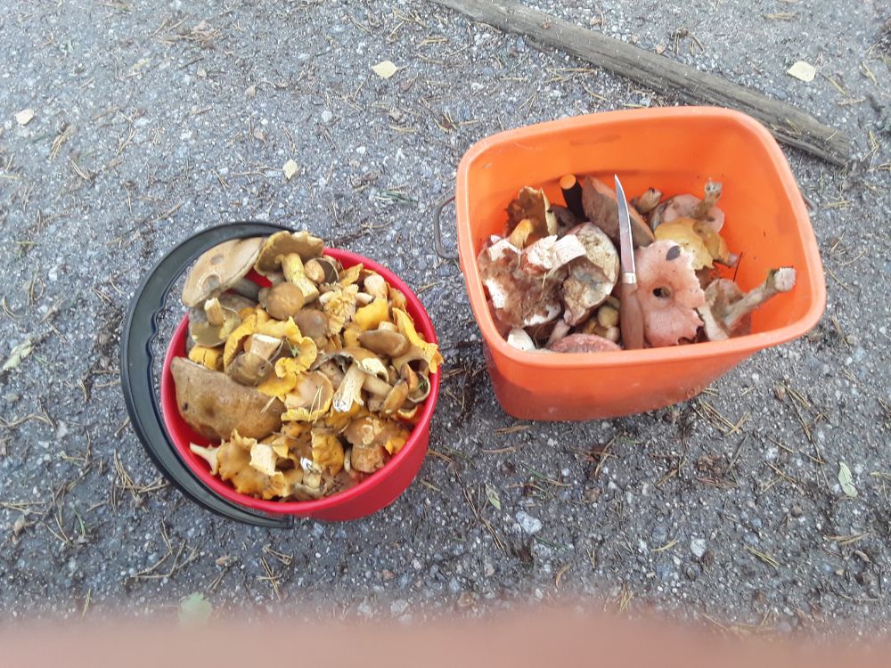 Блин! Сначала думал, что подосиновик в правом ведре, а когда увеличил и присмотрелся - понял, что торец рукоятки от ножа