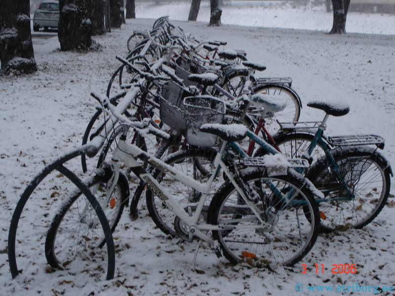 На улице снегу по колено, но лыжи пока рано смазывать - по календарю исчо осень. На великах усЕ рассекают - ИкстИмалы!