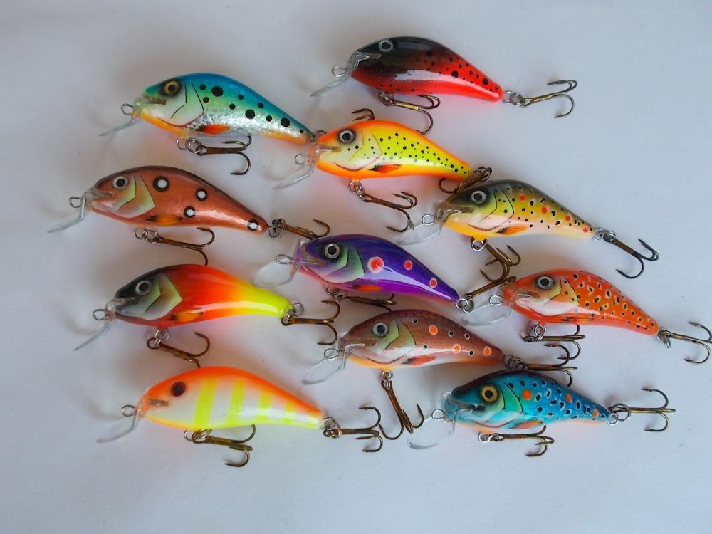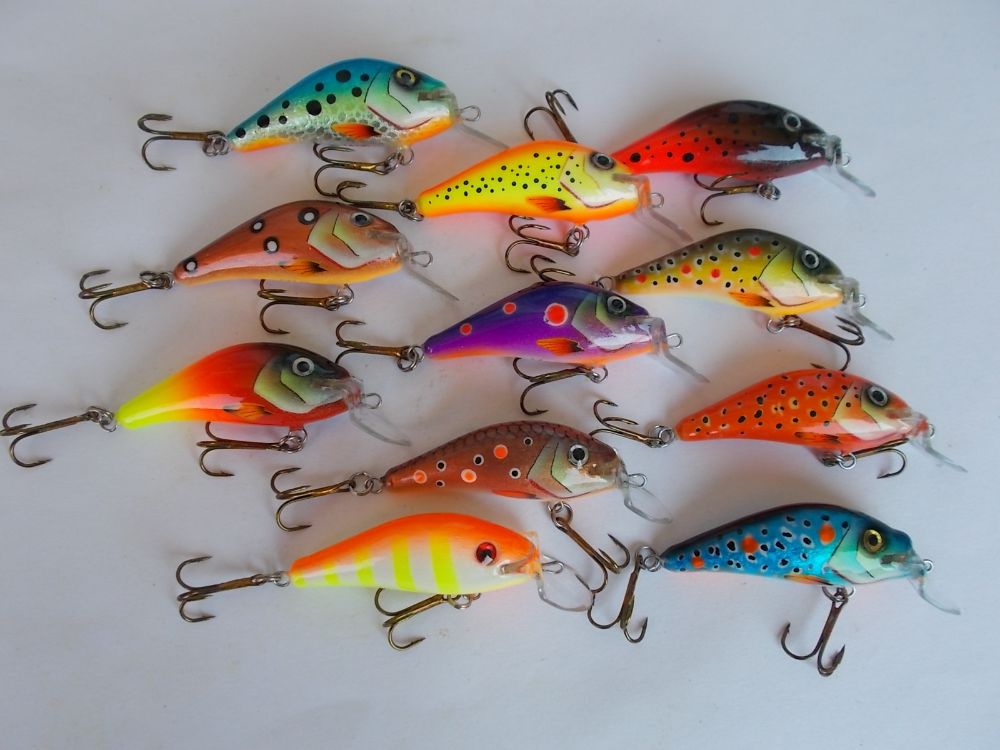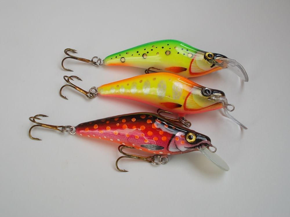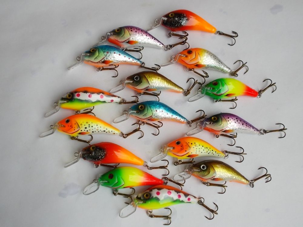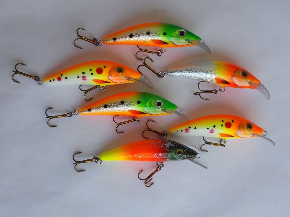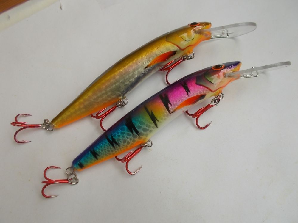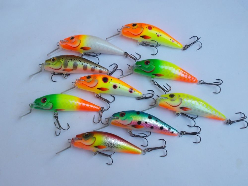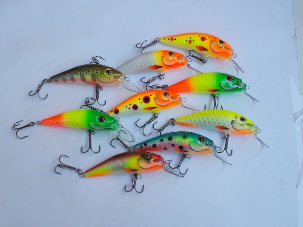 Абаша, 70мм. вес с крючками около 10гр. плавающие. Лопасть прямая, заглубление около 1-1,5 метра.