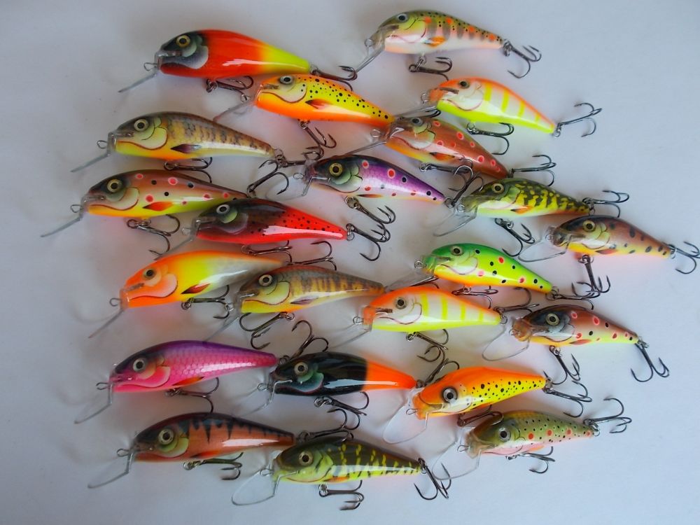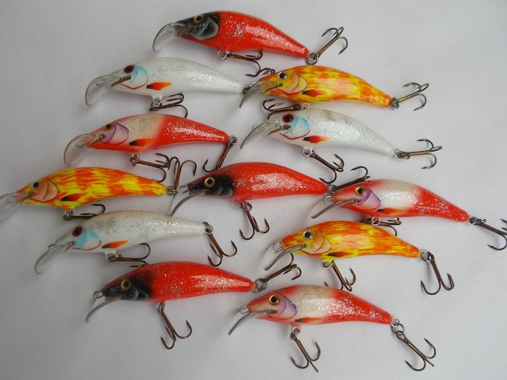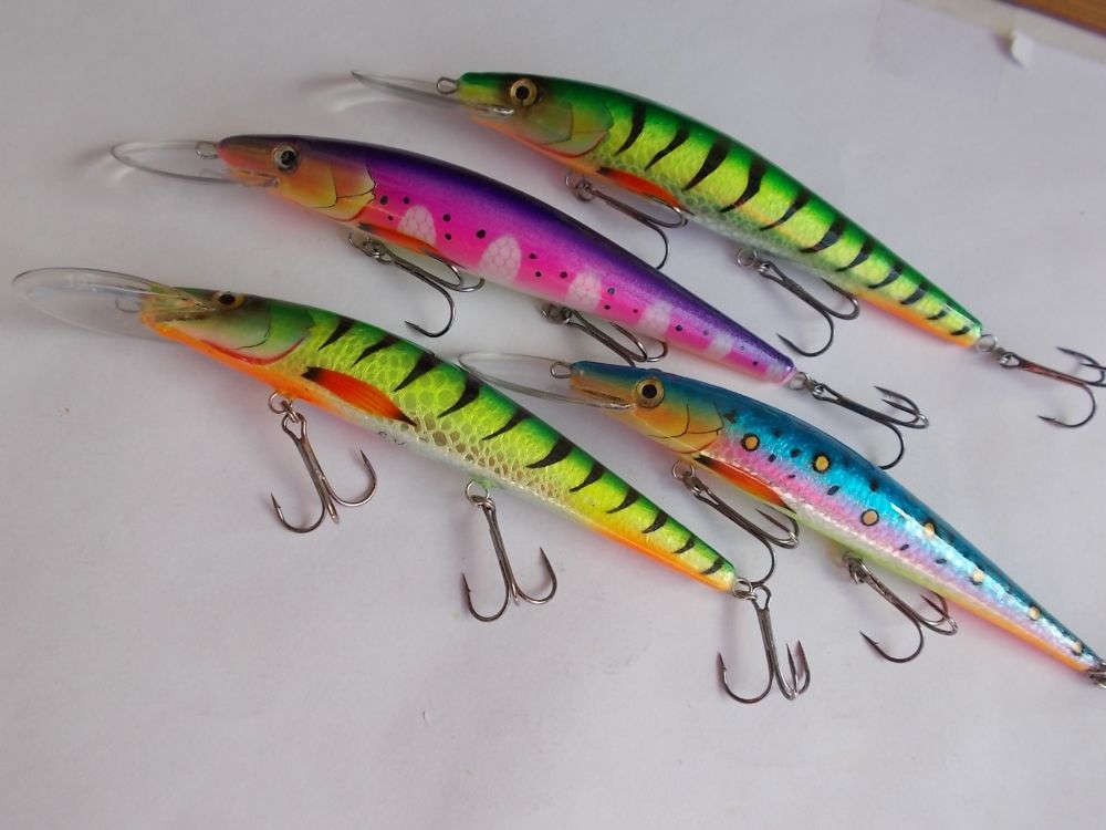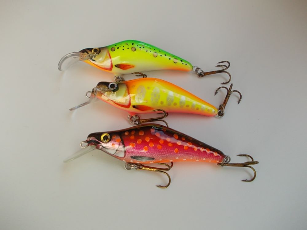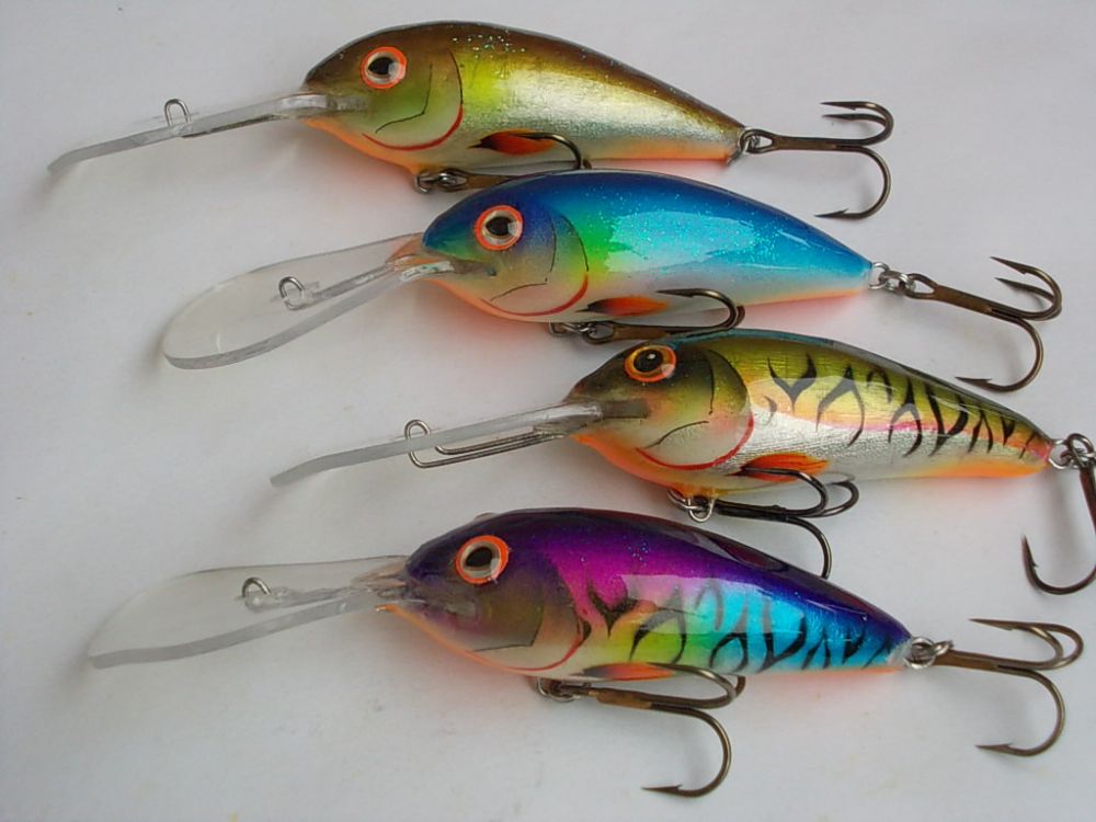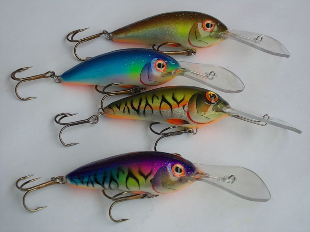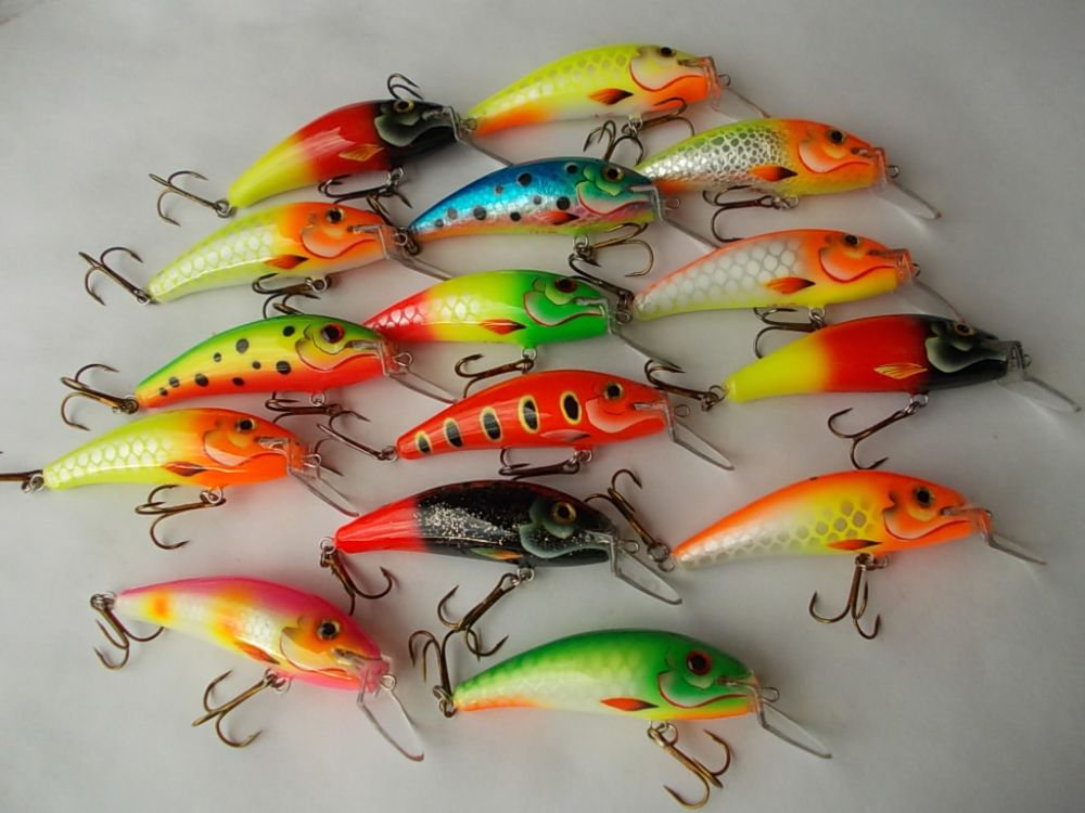 Абаша, 70мм. вес с крючками около 10гр. плавающие. Лопасть прямая, заглубление около 1-1,5 метра.