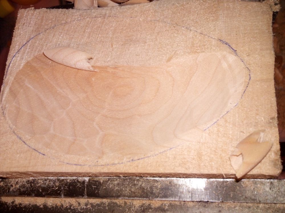 Кусок дерева необходимого размера, до плоскости довожу рашпилем. Сразу задаю общий изгиб.