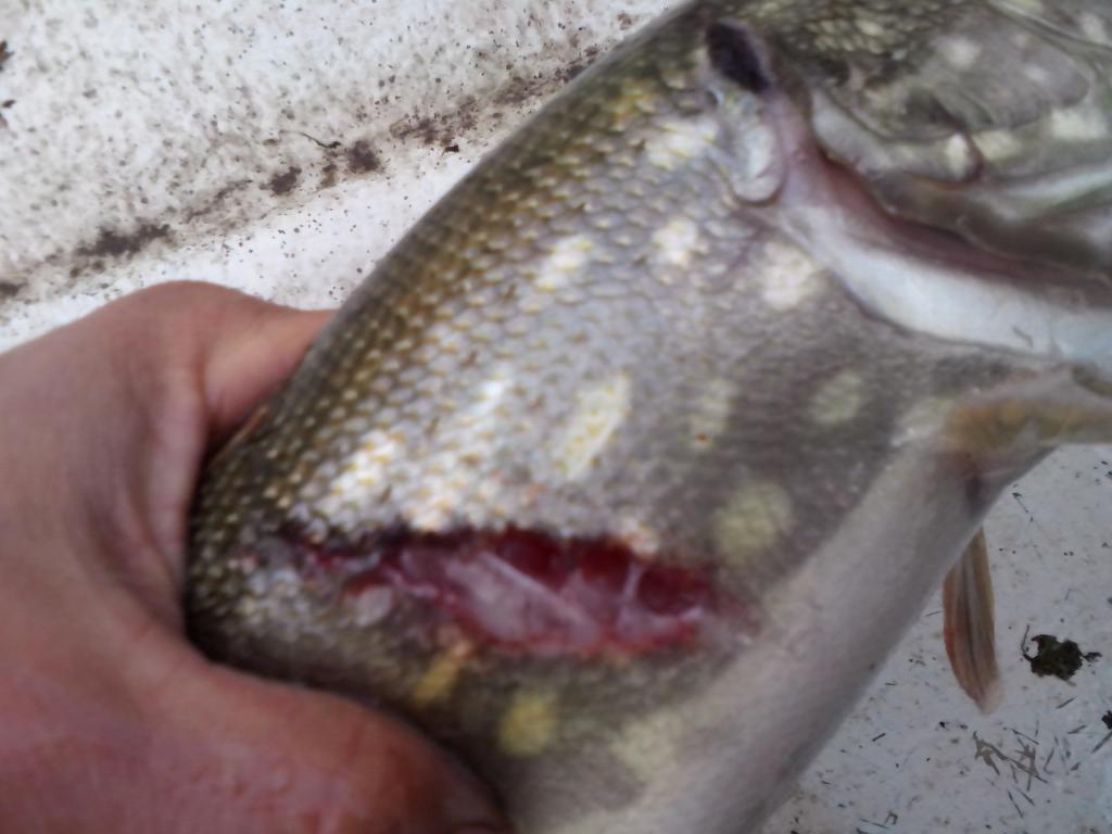 начиная с четвертого дня похолодало, ветер стал более свежим, рыба стала более вялой и опустилась глубже до 4-5м. самым эффективным местом в эти три дня был ровный стол по краю большой ямы (о ней ниже.) с дном, покрытым нитчатыми водорослями. чуть не угадал с глубиной проводки и вместе с воблером вынимаешь мочалку из этой тины. дня с пятого стала попадаться покусанная щука. размер пойманной рыбы несколько увеличился.