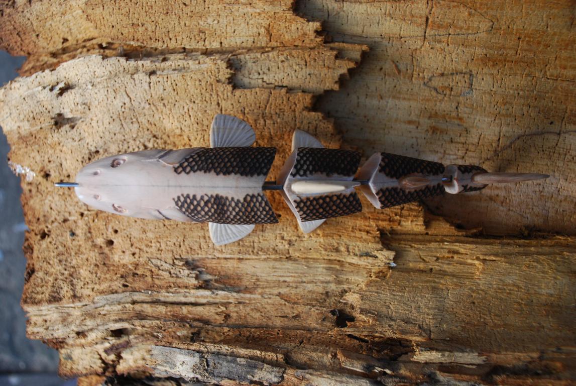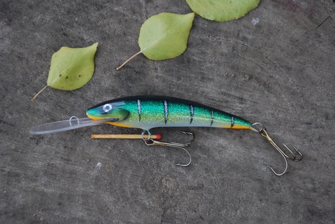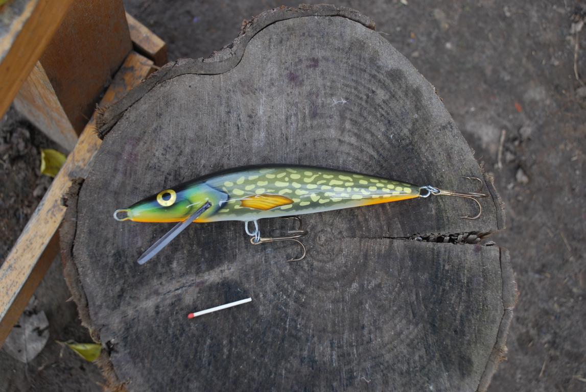 цель всей этой работы: хотелось посмотреть, как изменится работа финской классики с нормальными лопастями. сами воблеры в предыдущих трех сообщениях. результат очень интересный. практически никакой разницы в игре нет. все варианты лопастей с этим корпусом дают почти одинаковую игру. вытянутое седло с петлей на лопасти играет чуть амплитудней при той же частоте, круглая ровная лопасть имеет амплитуду чуть меньше. все остальное (в том числе воблеры полностью полые изнутри, чей вес по сути сводится к весу каркаса и ЛКМ) имеют почти одинаковую высокочастотную и малоамплитудную игру. заглубление безусловно разное в зависимости от лопасти.