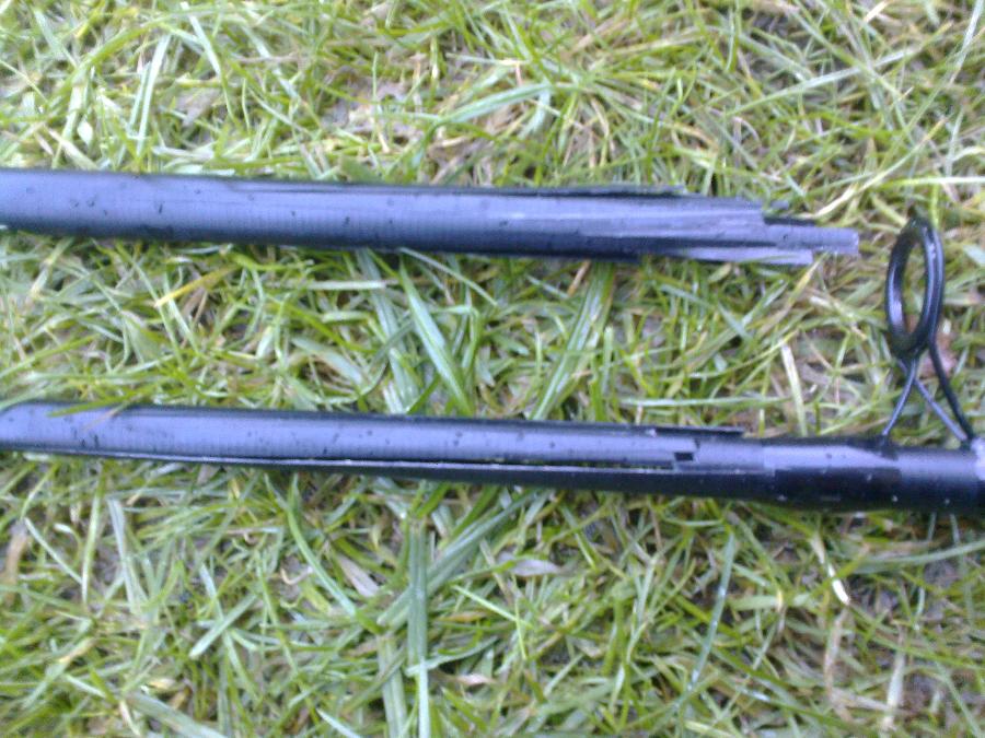 Около полудня, при очередном забросе, треск и мой карповый двучастник, тестом в 3.5LB ломается в двух местах, во втором колене. А груз то всего 100г. :unknown:
