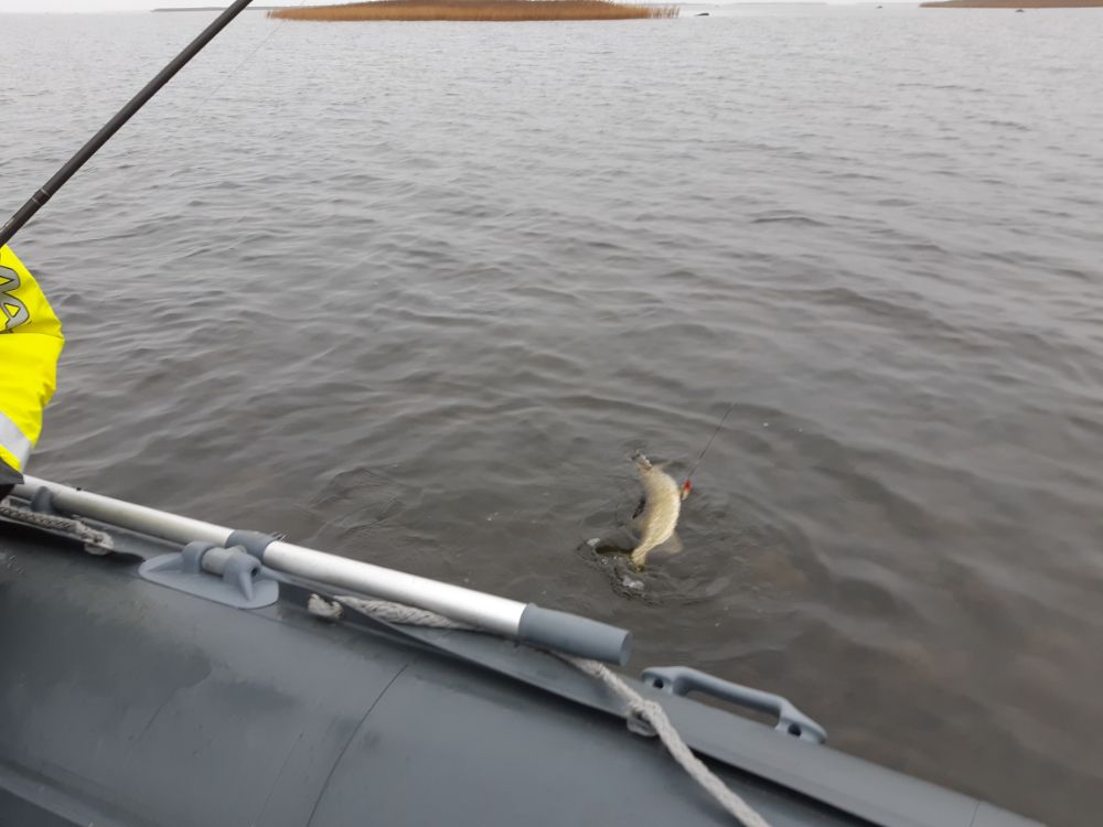 Ну и от меня пару слов о субботней рыбалке. В пятницу приехали в Хаапсалу, но на воду не выходили - задувало. В Субботу с утра вышли, лодок не много (сравниваю с прошлой субботой). Дошли до Сеасаара, наша точка была свободна. Начали ловить на 1 метре в окнах, но рыба не отозвалась. Нашли её там же, немного поглубже, на 1,5-2 метрах. К обеду немного задуло и решили прокатиться под Вормси, в район Свиби. Там было глухо и приняли решение вернуться. Решение было верное