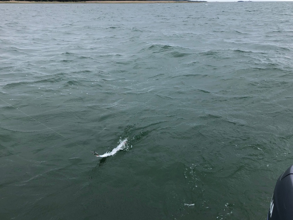 Ездил сегодня первый раз на саргана. Решил ехать в Хаапсалу и идти на северное побережье Вормси. Вышли около обеда, долетели минут за 10-15, но картина там была не радужная - стал подниматься ветер и волна. Несколько лодок ходили вдоль судового хода под Сеасааром. Пока распустились уже неслабо шатало. Попытались потролить но из этого ничего не получилось - пошли назад в берег. Обратный путь занял часа полтора