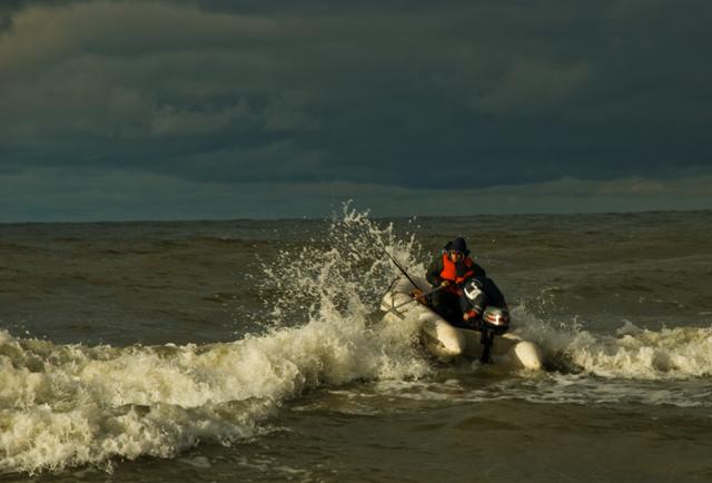 !!!А когда в лодке сидели казалось что не такие сильные волны были!!!!