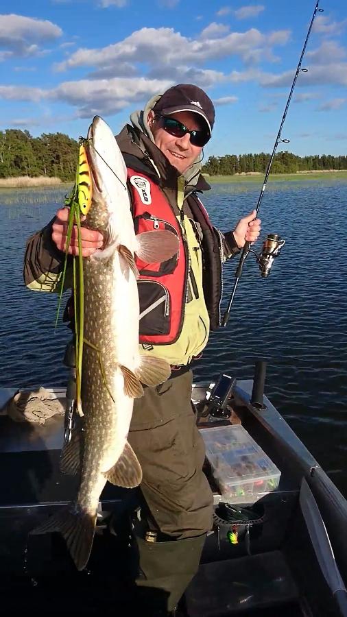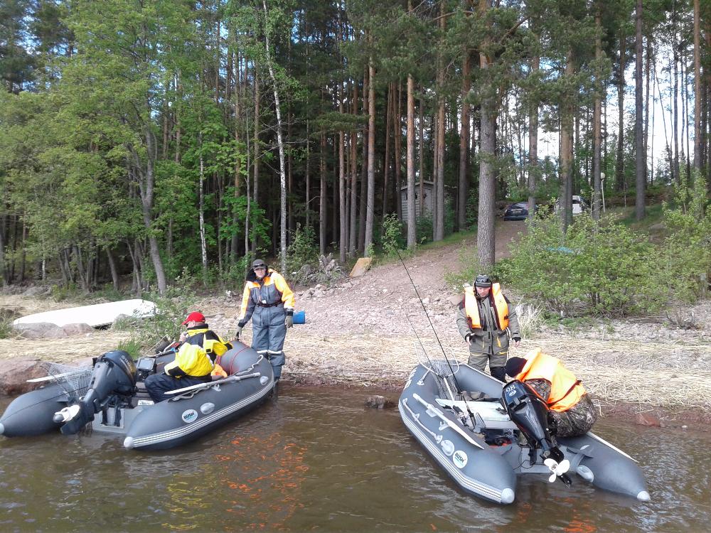 В пятнцицу в 5.00 подъём, а на улице шумел камыш - деревья гнулись причём в прямом смысле, обещаные 6-8 м/с можно было смело умножать на 2,а то и больше. Два экипажа на надувастиках после небольшого консилиума почесав репу пошли в домик дальше продолжать Чаепитие, благо заварки взяли много (как в воду глядели, ибо наличие заварки очень здорово компенсировало адский ветродуй). Ну а мы с Тармо мл. в слегка мягком состоянии прыгнули в нашу микрокастрюлю и потихоньку галсами кое-как вылезли. После весёлого перехода больше похожего на скачки на родео , дошли до более-менее тихого залива и начали потихоньку облавливать перспективные места. Отбомбились по полной до вечера. С перекуром в час на дневной сон. В этот день Тармо меня порвал, как Тузик грелку со счётом 8:3 и отличился неплохим трофеем на 7кг.