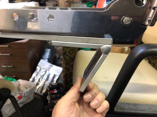 Владимир, да, конечно! На фото ниже виден уголок, который будет приварен к носу и скручен болтами с роульсом через саму площадку. Получается этот уголок будет прилегать одной из сторон к узкой части площадки снизу и опираться на край носа катера - у меня там как-раз порван привальник и в этом месте можно привариться. Уголок сделал с запасом по длине, чтобы при установке можно было его подрезать по форме носа, где он будет приварен, но из 8-ки а не из 10-ки как сама площадка.