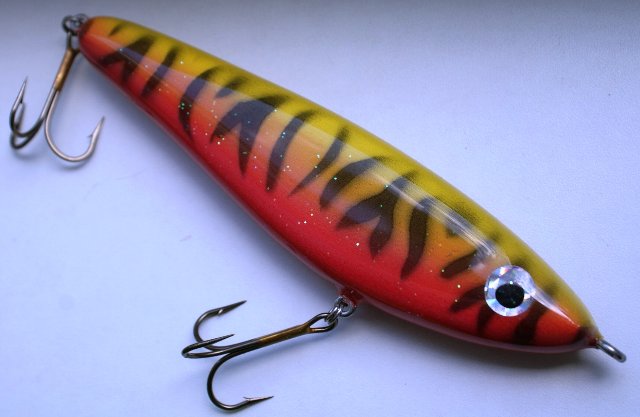 По образу и подобию твоих работ сделал джерк с силиконовым хвостом. Вчера обкатал на воде. Оказался не прост в проводке, но интересный. На равномерной проводке машет хвостом как рапаловский, на длинных потяжках идет почти прямо с небольшими отклонениями, а при быстрых делает резкие глайды в сторону.