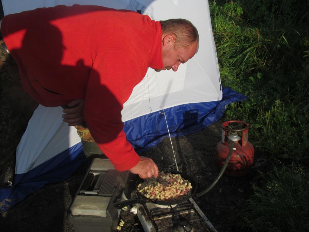 Первым обрыбился я - налимчик попался уже в первых сумерках где-то в пятом часу. Не мудрствуя лукаво, ловил на свою любимую оснастку Гарднера. Только не на плетню, а на монофил, и тупо на донки. Фидер в ловле налима явно лишнее, хотя Миша и упирался.