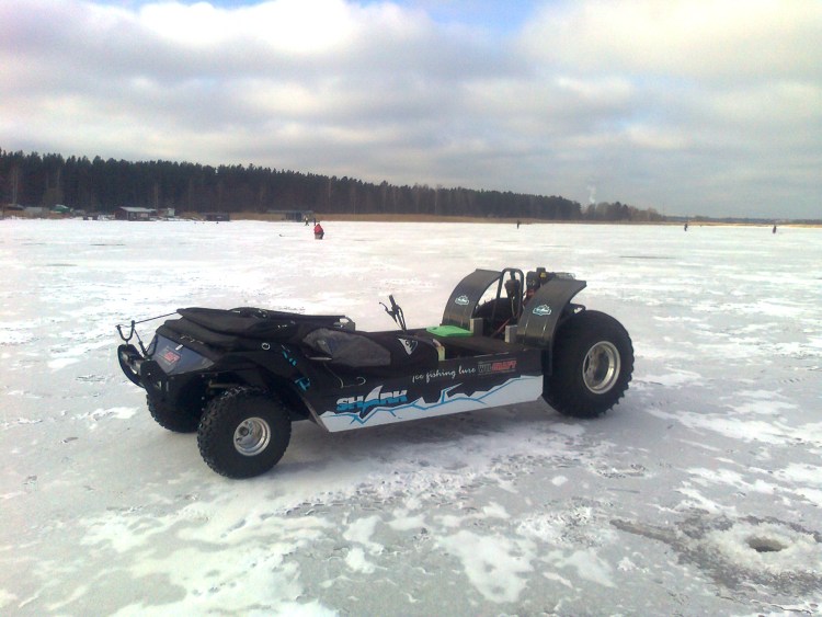 Олег, сия хреновина стоит дорого. Цену знаю, но боюсь озвучивать. Народ это может принять за номер телефона и начнётся неразбериха со звонками в неизвесность!:D На технике стоит гидравлика, т. е. она опускается для ловли и поднимается для передвижения. В днище есть отверстия для бурения лунок с дальнейшим их использованием по назначению. Есть тент на всю длину базы и да, она плавает, ну или не тонет, как тебе благозвучней. Хотя как первое, так и второе у меня ассоциируется с унылым гуано! На лёд залазит благодаря шинам низкого давления. Двигло 1.2 кобылы (кажись), а может и меньше, как у пылесоса или швейной машинки, но видимо большего и не надо....